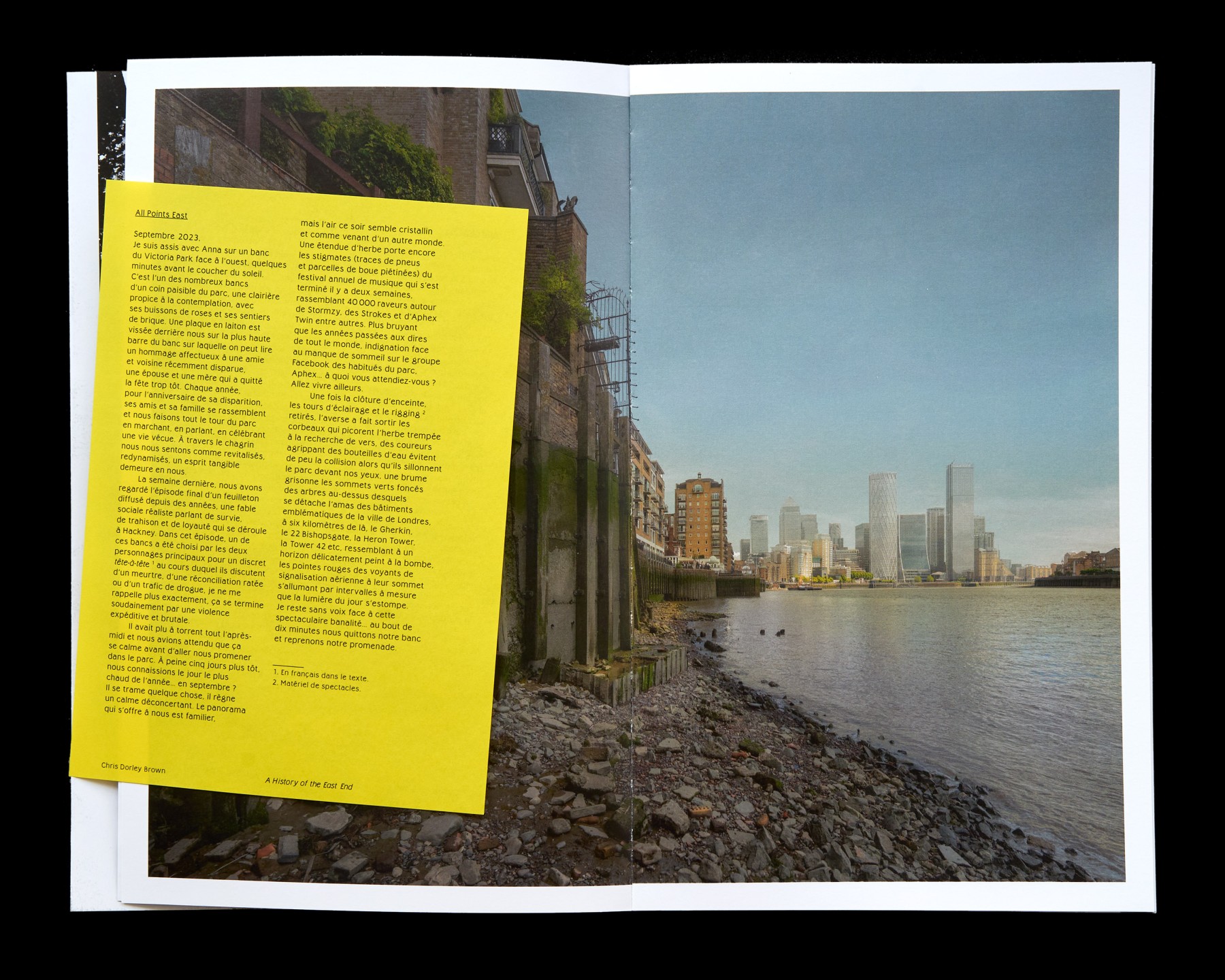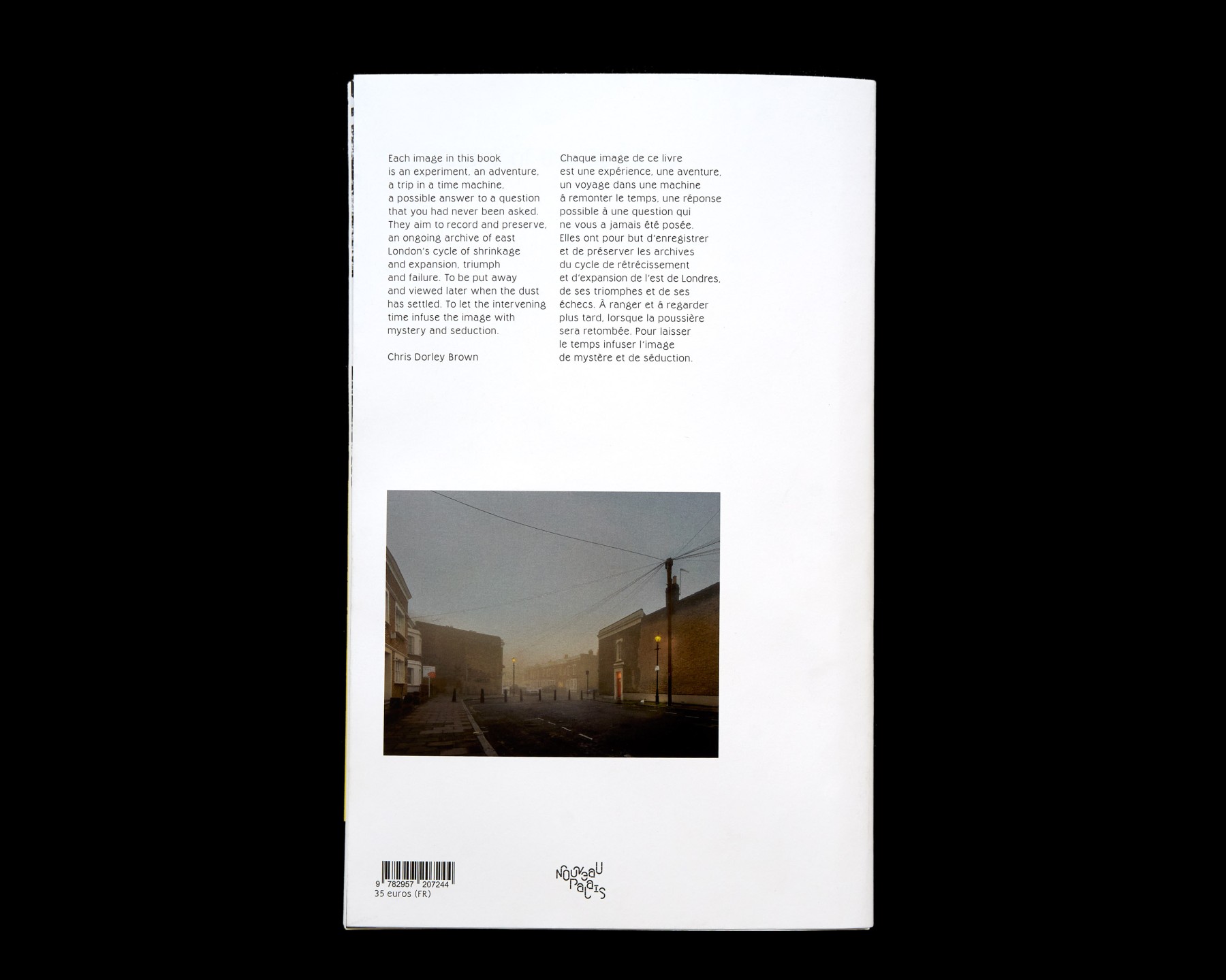 The photographs presented in this book - almost 100 - were taken between 1984 and 2023. The journey through the book is like taking a stroll: starting on the banks of the Thames, we discover the vernacular architecture of the 1980s; their demolition a few years later; followed by more recent architecture. We follow the transformations brought about by construction for the Olympic Games; then, the deserted streets during lockdown; ending on the banks of the Thames, almost at its mouth. One-offs, here and there, intersperse these main themes.