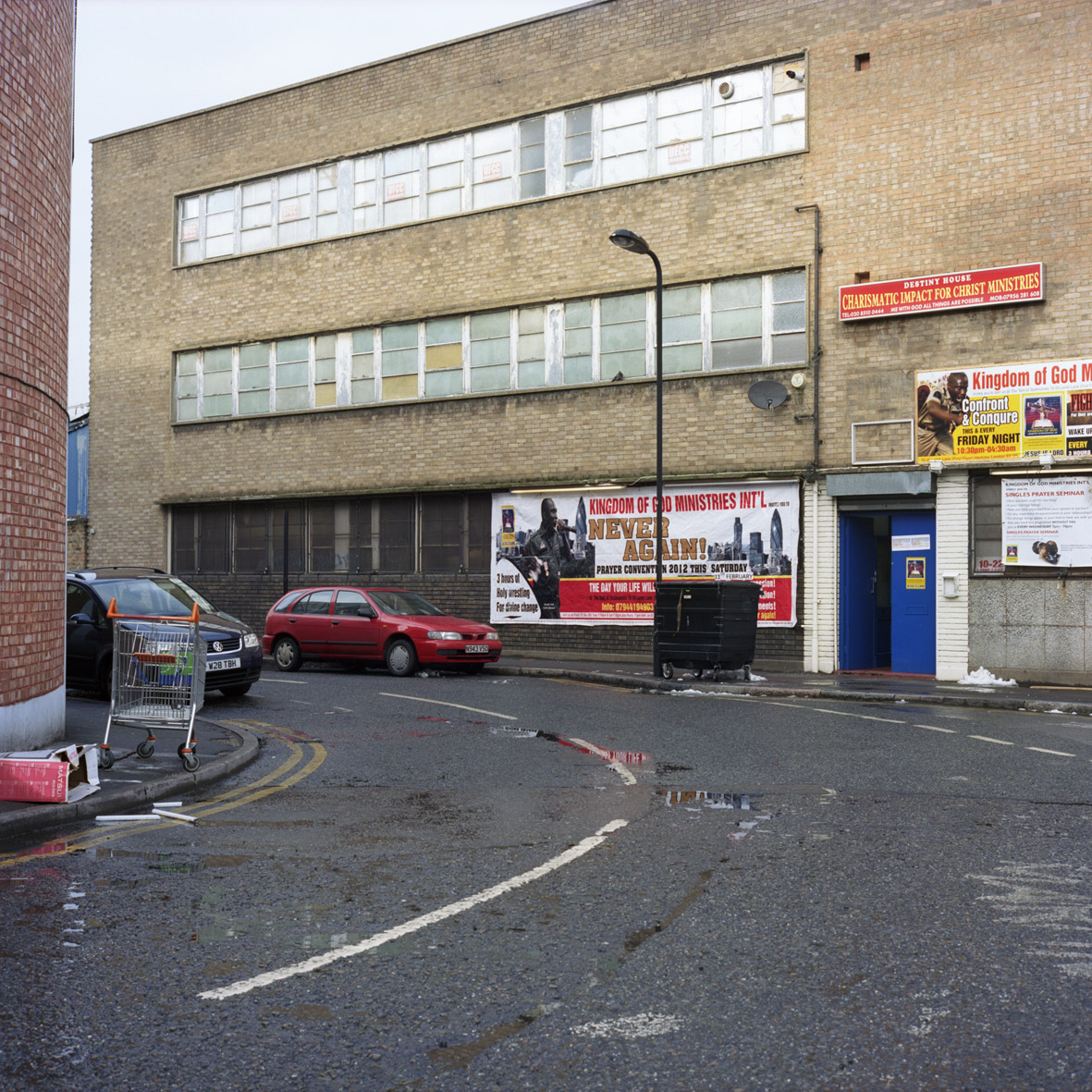 Par définition, c’est toujours par un regard rétrospectif que la ruine peut être vue pour ce qu’elle est – comme ruine (c’est-à-dire comme ce que, fondamentalement, elle n’est plus). En tant que désaffecté, le bâtiment se présente maintenant à nous comme un pur et simple élément de décor. Un bâtiment à la façade duquel n’importe quelle enseigne peut, de nouveau, et à nouveaux frais, faire illusion. « Charismatic Impact for Christ Ministries / Kingdom of God Ministries Int’l », s’affichait ainsi sur sa façade au début des années 2010. « The Redeemed Christian Church of God » l’avait ensuite remplacé, pour finalement disparaître à son tour. Ce que nous pouvons entrevoir derrière le recyclage de cette unité industrielle en temple – la communauté des fidèles venant aujourd’hui à la place de la communauté des travailleurs, dont l’unité reposait non pas sur une croyance commune et l’allégeance à une autorité spirituelle, mais sur l’affiliation à un syndicat –, c’est, arc-boutée sur un capitalisme chancelant, la modernité même à l’état de ruine. Un diagnostic qui a commencé à être posé en Grande-Bretagne dès les années 1960-1970, sous l’effet conjugué du traumatisme de la guerre et de la dégradation de la situation économique et de la brutale réponse néolibérale, qui a définitivement anéanti ce que Ken Loach a appelé « l’esprit de 45 » – un idéal social supporté, sur le plan politique, par ce que l’on a identifié comme le « consensus keynésien ».