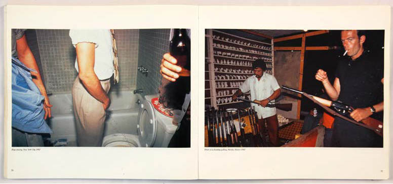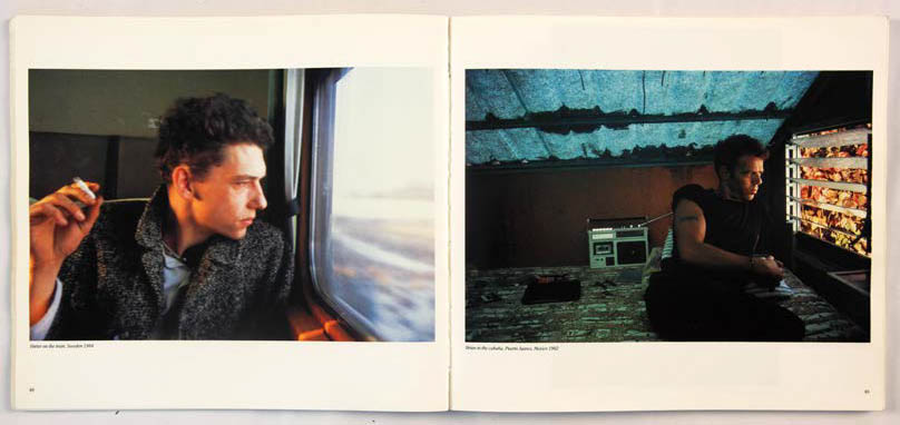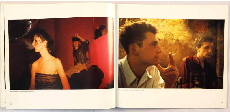 Les chapitres After Hours (p.114 et 115) et All Tomorrow’s Party (p.116 et 117) se succèdent aussi avec un basculement de lumière, soutenu par les paroles de chanson. After Hours (après des heures) c’est toujours la fête. La photographie Dieter and Wolfgang at the O-bar (p.115) est prise sans flash, la lumière orange et l’attitude des personnages évoquent la fin de soirée. Les mots : « If you close the door, The night could last forever. Leave the sunshine out, And say hello to never. All the people are dancing, And they’re having such fun, I wish it could happen to me. But if you close the door, I’d never have to see the day again » assurent la transition de la fête au lendemain, de la nuit à la lumière du jour des pages 116 et 117 (Sun hits the road p.117).