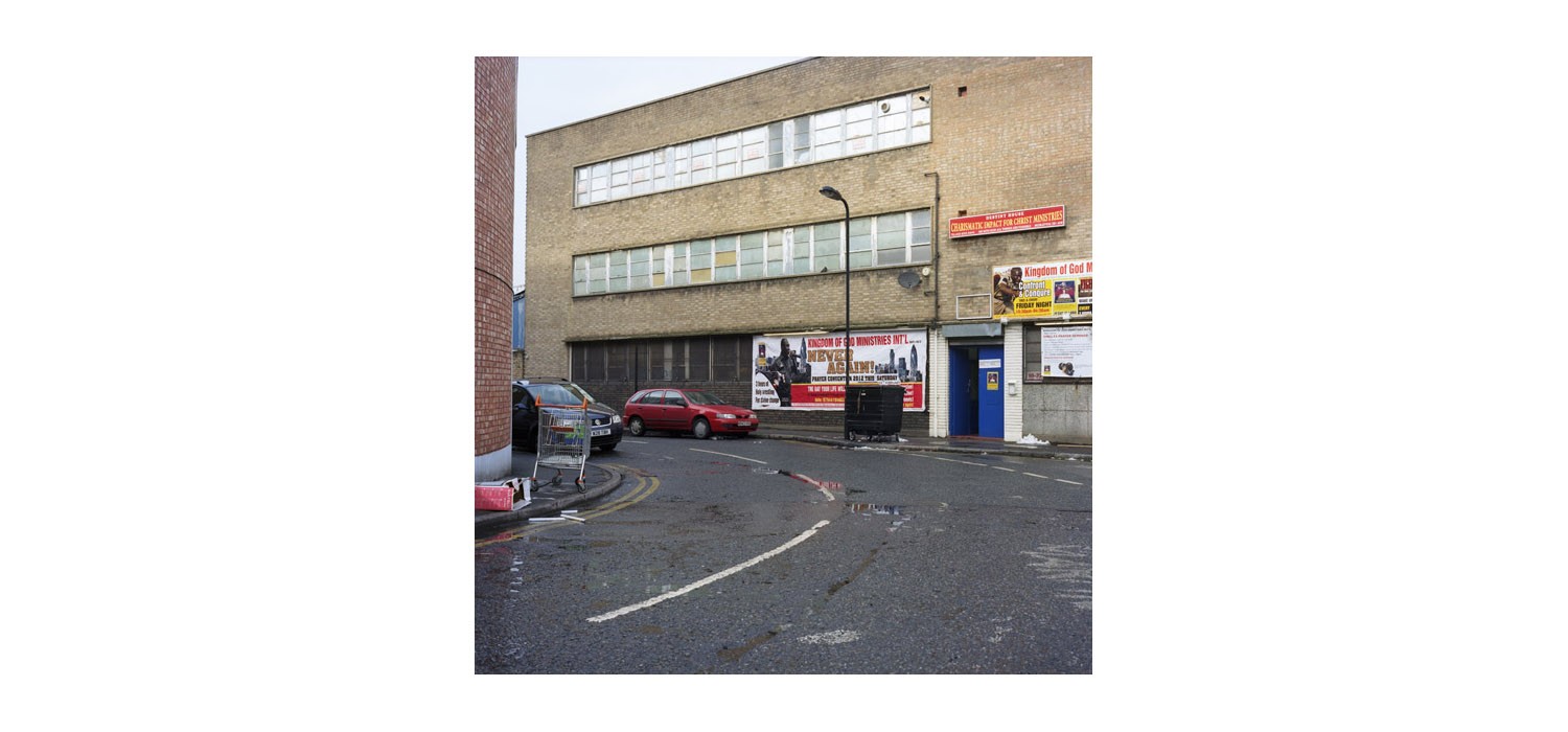 Par définition, c’est toujours par un regard rétrospectif que la ruine peut être vue pour ce qu’elle est – comme ruine (c’est-à-dire comme ce que, fondamentalement, elle n’est plus). En tant que désaffecté, le bâtiment se présente maintenant à nous comme un pur et simple élément de décor. Un bâtiment à la façade duquel n’importe quelle enseigne peut, de nouveau, et à nouveaux frais, faire illusion. « Charismatic Impact for Christ Ministries / Kingdom of God Ministries Int’l », s’affichait ainsi sur sa façade au début des années 2010. « The Redeemed Christian Church of God » l’avait ensuite remplacé, pour finalement disparaître à son tour. Ce que nous pouvons entrevoir derrière le recyclage de cette unité industrielle en temple – la communauté des fidèles venant aujourd’hui à la place de la communauté des travailleurs, dont l’unité reposait non pas sur une croyance commune et l’allégeance à une autorité spirituelle, mais sur l’affiliation à un syndicat –, c’est, arc-boutée sur un capitalisme chancelant, la modernité même à l’état de ruine. Un diagnostic qui a commencé à être posé en Grande-Bretagne dès les années 1960-1970, sous l’effet conjugué du traumatisme de la guerre et de la dégradation de la situation économique et de la brutale réponse néolibérale, qui a définitivement anéanti ce que Ken Loach a appelé « l’esprit de 45 » – un idéal social supporté, sur le plan politique, par ce que l’on a identifié comme le « consensus keynésien ».
