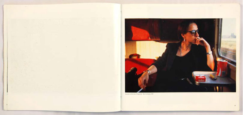 Par-dessus le riff d’une guitare que nous connaissons tous, James Brown chante This Is a Man’s World. Le morceau donne le titre au septième chapitre du livre et introduit la séquence consacrée au monde des hommes (p.45). Les paroles « men made the cars » et « men made the train », assurent la transition entre Mark in the red car page 46, French Chris on the convertible page 47, et Dieter on the train page 48. La photographie page 50, prise en contre-jour d’un homme assis près d’une fenêtre, se mêle au « Lonely and blue » des paroles de Paul Anka. Le contraste, les couleurs et notamment le bleu du ciel, évoquent les peintures d’Edward Hopper.